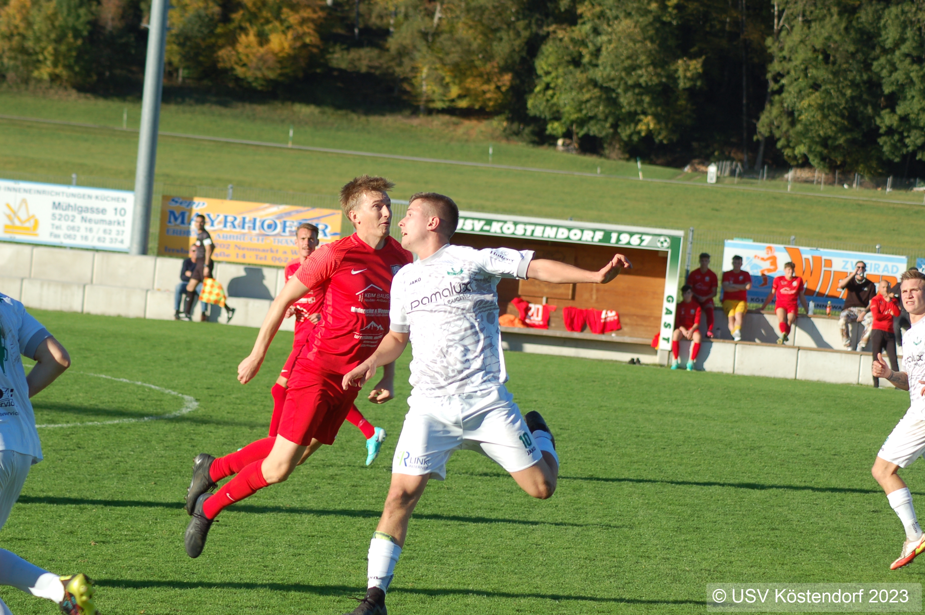 Die erste Halbzeit begann vielversprechend für den Heimverein, den USV Köstendorf. Schon in der 7. Minute brachte Spielertrainer Georg "Schurli" Seidl eine Ecke von links in den Strafraum, die von Darko Bogosavljevic per Kopf zum 1:0 verwandelt wurde. Der USV Köstendorf setzte seine Angriffe fort und erzielte in der 38. Minute ein weiteres Tor nach einer erneuten Ecke von Georg Seidl. Darko Bogosavljevic war erneut mit dem Kopf zur Stelle und erhöhte auf 2:0. Damit ging es mit einer komfortablen Führung in die Halbzeitpause.