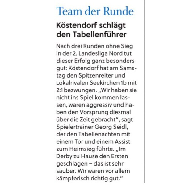 Köstendorf siegt im #Wallersee #Derby 2:1 (2:0) gegen @svseekirchen 1b. @shureli trifft zum 1:0 und bereitet das 2:0 von @flo_mangelberger mit einer schönen Flanke vor.